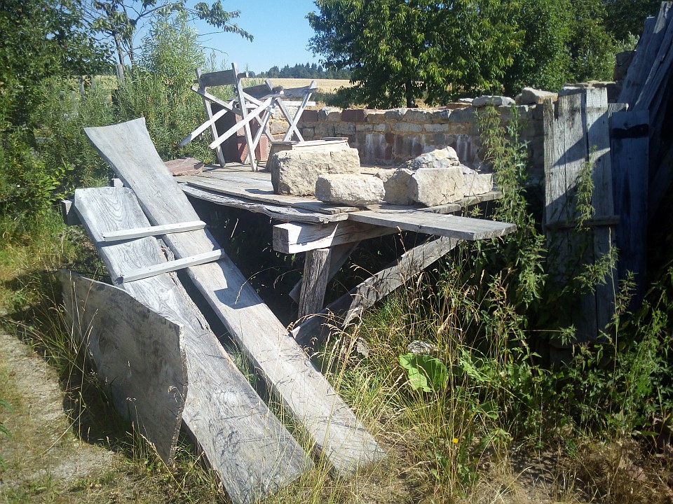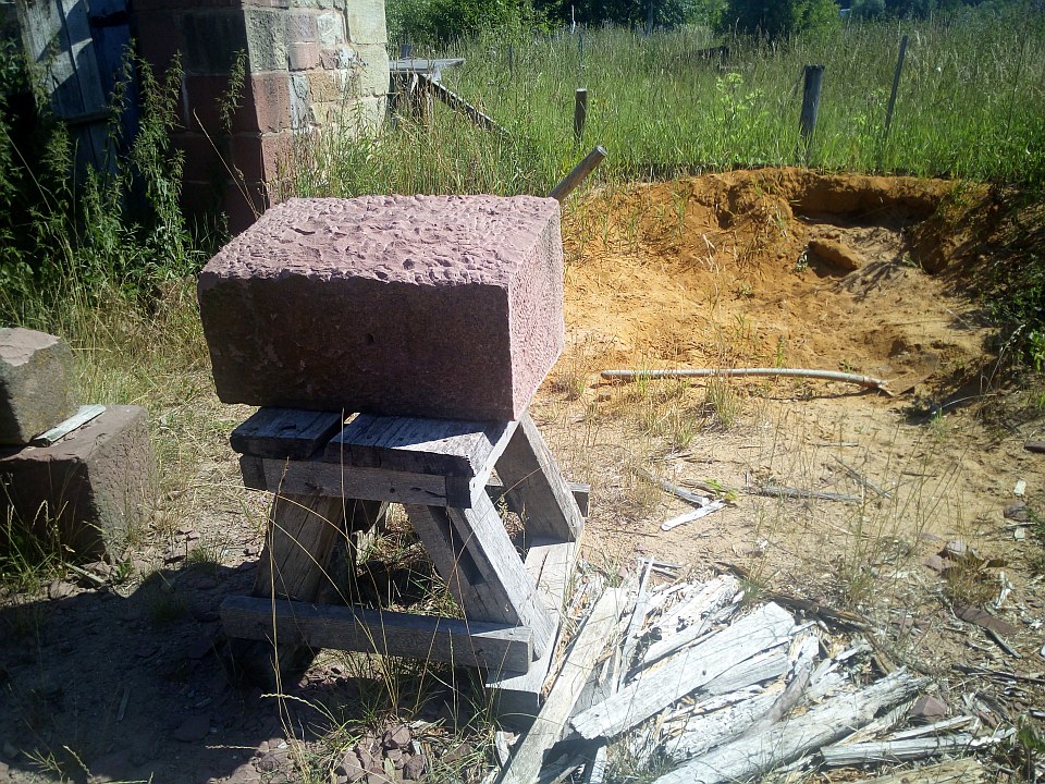 Im Nachbarhaus: Arbeiten am Stein ohne moderne Hilfsmittel...