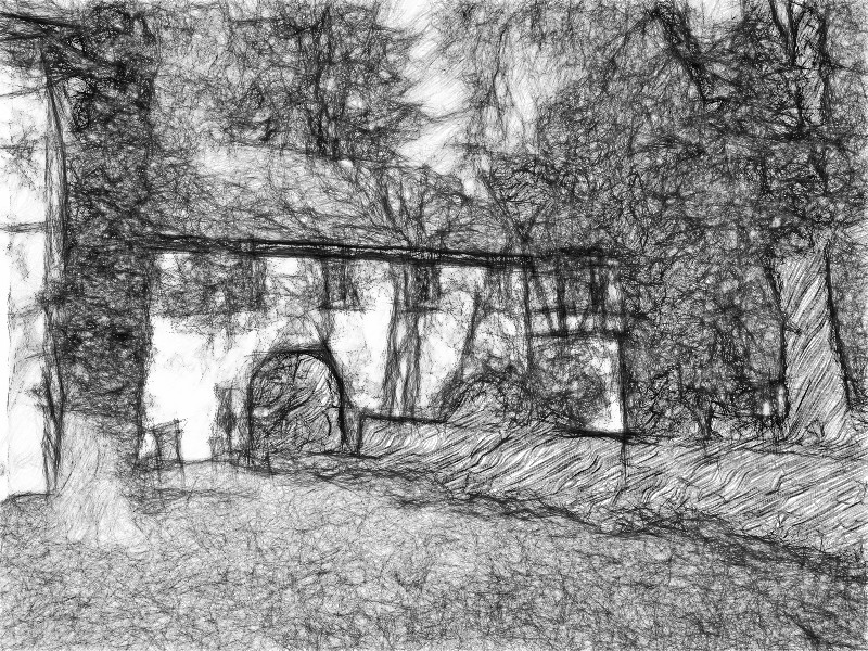 Wir stellen diese Szene mit einer jungen langhaarigen Frau nach. Die Besonderheit: Wenn die junge Frau von den Eltern gerufen wird, erhebt sie sich - und da, wo ihre Haare in der Sonne lagen, bleibt ein Abdruck zurück. Dieser geht in Rauch und Flammen auf. (wir streuen harmloses Pulver unter ihr Haar auf dem Stein. Es wird dann, wenn sie ihr Haar nicht mehr dort ausbreitet, durch Schießpulver ersetzt, das wir zünden) |