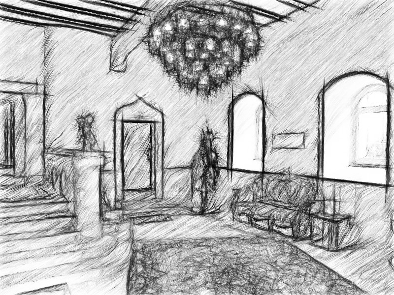Im Salon steht reglos das Feuerwesen da, als wäre es eine Statue wie die Ritterrüstung, und wird nicht beachtet von König und Königin. Im Raum für Adlige treffen sie sich mit bis zu vier anderen Adligen zu einem Umtrunk. Wein wird eingeschenkt - doch als die Anwesenden den Wein zum trinken anheben, steigen Flammen aus ihren Gefäßen auf. Zugleich wird der Raum vom Fenster her in rotes Licht getaucht. Die Anwesenden stellen die brennenden Trinkgefäße eher erstaunt als erschrocken hin. Die Königin ruft aus dem rotleuchtenden Fenster nach ihrer Tochter im Garten. Diese erhebt sich, und kurz nachdem sie aufgestanden ist, geht der Umriss ihrer Haare in Flammen auf. Sie läuft zur Tür des Turms, um in das Schloss zu gelangen. Die Fassade des Schlosses ist zu diesem Zeitpunkt schon "dem Feuer geweiht". |