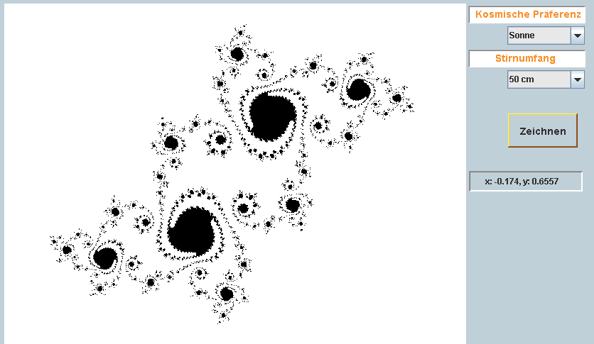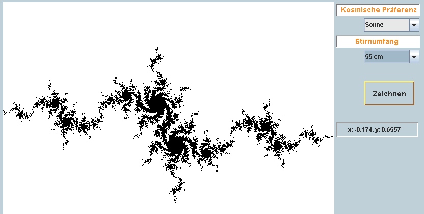 Von DOS nach Java umgeschrieben, aber im Prinzip gleichgeblieben: Die Umsetzung des "Fraktalogramms" in der Programmierung von Bertram Maurer, wie sie ab von 1993 im Einsatz ist. Dein persönliches Fraktal - druckbar, deutbar, Kunststück, Mythos - erfunden 1993