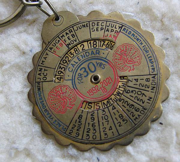 einer kleinen Metallscheibe aus Indien mit der Welt der Schaltjahre und