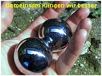 links hält zwei klingende Handkugeln. Wenn sie leicht