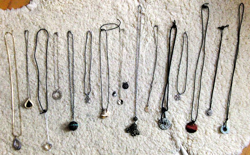 Alle fünfzehn Ketten werden auf den Unterseiten einzeln vorgestellt. Sie lassen sich im Foto auch anklicken. Nur die Kette mit der in Ton geprägten Laute wandert direkt zum Lied "Straßenmusik". |