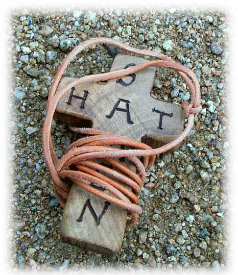 Spontan bei der Annäherung an diesen Stand war mir jenes eine Kreuz ins Auge gefallen, das ich sofort ganz zu verstehen meinte - auch anders zu verstehen meinte, als es der Händler erläuterte. Dieser erklärte, es sei ein skultpurgewordenes Wortspiel - nämlich ein Kreuz-Wort-Rätsel. Das Rätsel bestehe daraus, dass man einem Anderen nur eine Seite des Kreuzes zeigte und er anhand des Sichtbaren das Unsichtbare auf der andern Seite erraten müsse - gleiche Buchstabenanzahl waagrecht und senkrecht, und ein Sinnzusammenhang. Tatsächlich erriet ich aus "HAT SAMEN" die Gegenseite "DER GEILE". So weit, so nett. Darüber hinaus erschien es mir jedoch als ein in zweifacher Weise lästerliches Kreuz: Das Kreuzsymbol, wie es sofort mit christlichen Bedeutung gekoppelt wird, war hier rabiat zurückbeordert zum Kreuz ohne eben diesen christlichen Aspekt. Und wenn da doch ein christlicher Beigeschmack zu bleiben versuchte, wurde er durch den obszönen Text parodiert. Das Kreuz war, ohne auf den Kopf gestellt werden zu müssen, teuflisch. Dabei war es nicht böse-teuflisch, sondern erotisch-teuflisch. Ich kaufte es, hängte es meiner damaligen Freundin um und sagte: Sei meine Sklavin... Wir hatten eine gute Stunde. Auf Reisen ist das eine gute Ausrede: Dieser fiese Alchemist hat mir so ein magisches Kreuz umgehängt... ich musste es einfach tun... Unvorbereitete Magier kann man so lahmlegen. Eine Kopie des Kreuzes, einmal ihnen umgehängt, lässt sich nicht ausziehen. Sie sind für eine Stunde zumindest damit beschäftigt, sich nicht zum Sklaven machen zu lassen, und an eigenständige Zauberei ist nicht zu denken. |