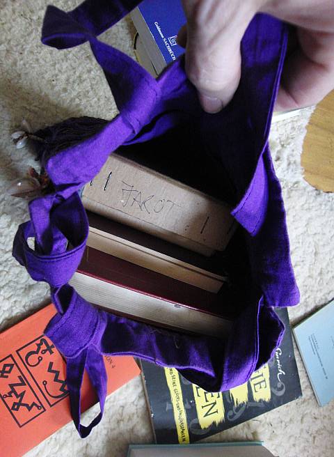 Tragetasche mit meiner "Bibliothek". Was da drin ist, wechselt. Doch oh