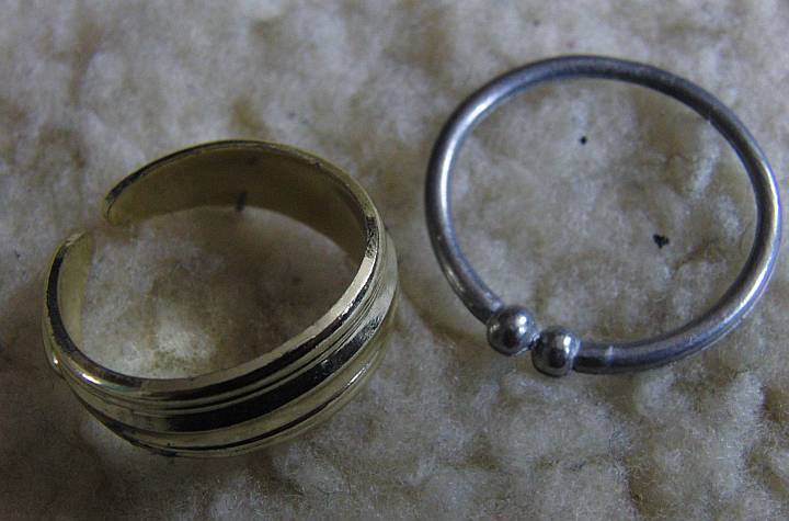 Piraten-Billig-Ohrklemme. Rechts das Silbermetallische ist für die Nase