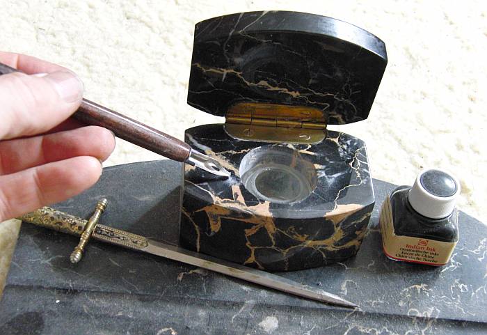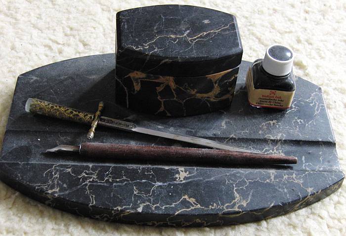 schaffen. In schwarzem Marmor habe ich das klassische Schreibzeug geerbt,