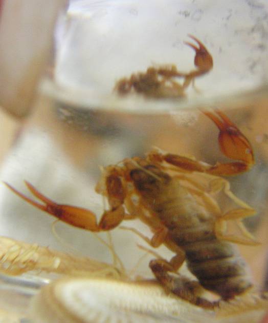 Ein unscharfer Skorpion über dem Individuum, das letztendlich von den