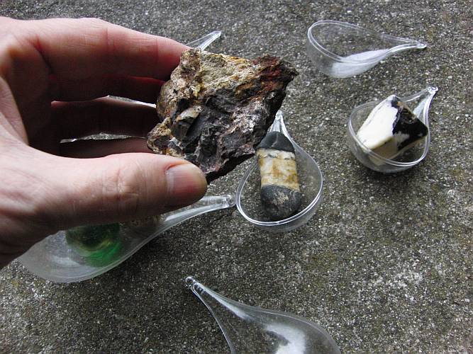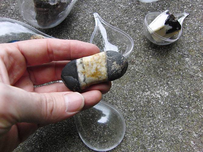 das Unscheinbare. Rechts der Schwarzweiße "Stein" ist ein Scheinstein. Es