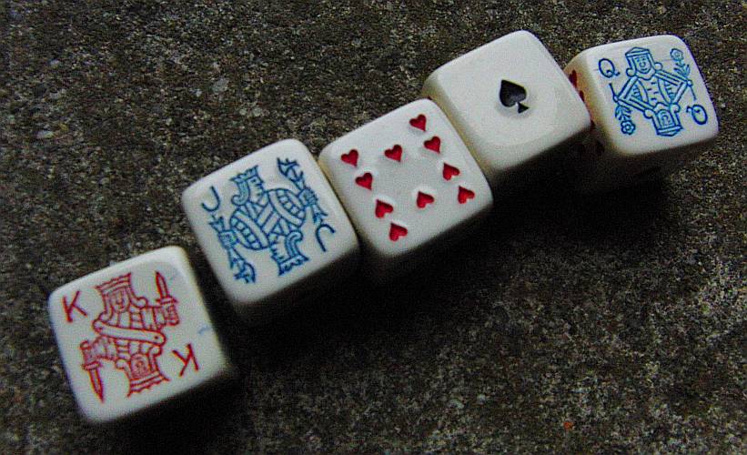Kartenspiel, und Anlass für stundenlange Würfelkämpfe: Die Pokerwürfel.